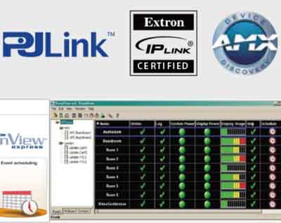 具有RJ-45接口和RS232接口,可支持多種網絡控制協議(Crestron/Extron/PJLink/AMX/Telnet)用戶可根據應用環境的需求,搭配不同的控制設備進行遠程控制和集中管理